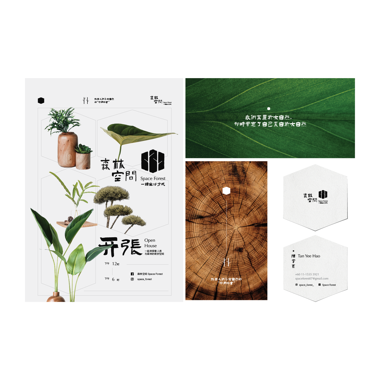 品牌标志以六边形作为空间的象征,并结合了森林的枝干图腾,以直接和简约的形式呈现在大众眼前。